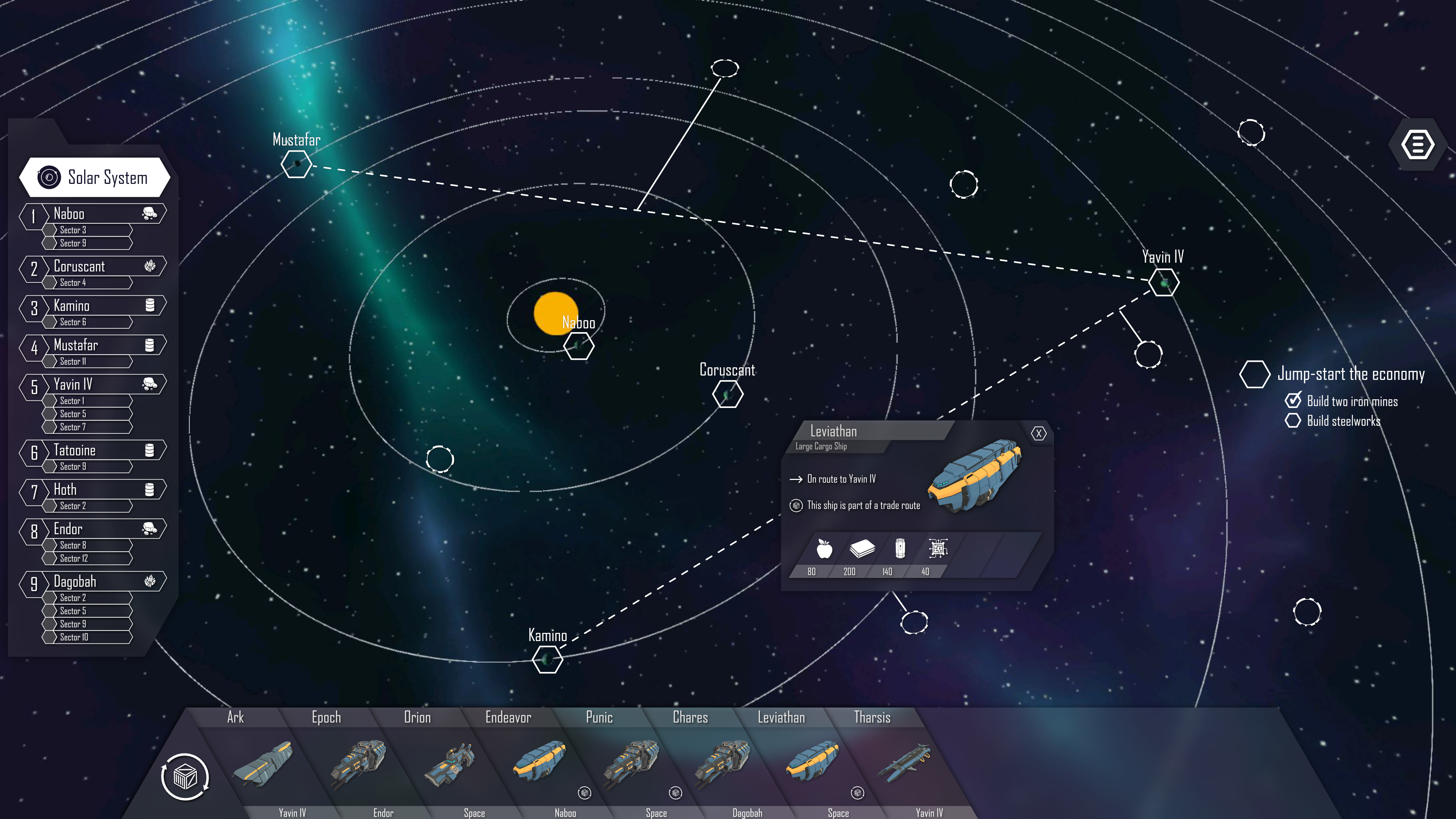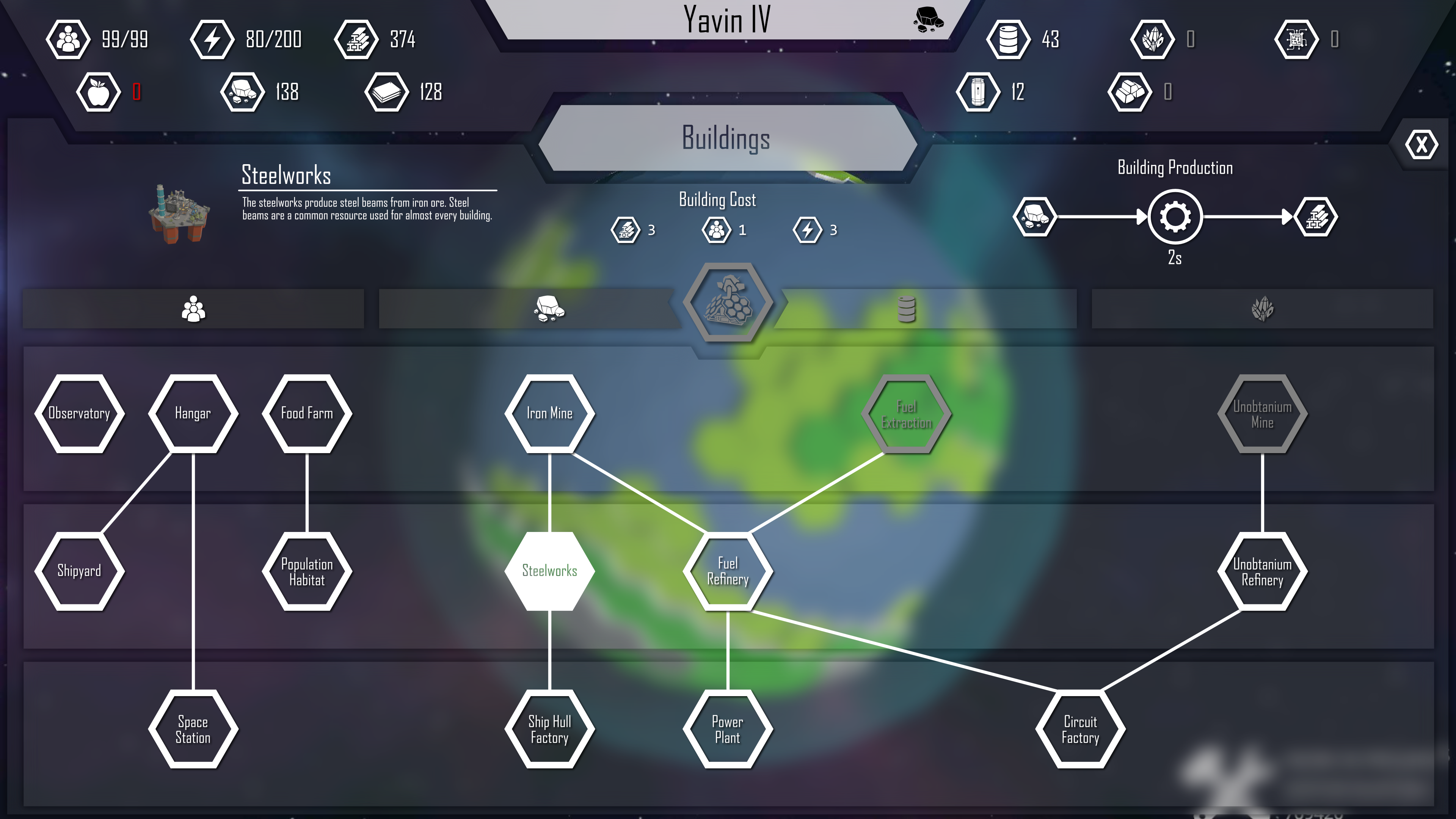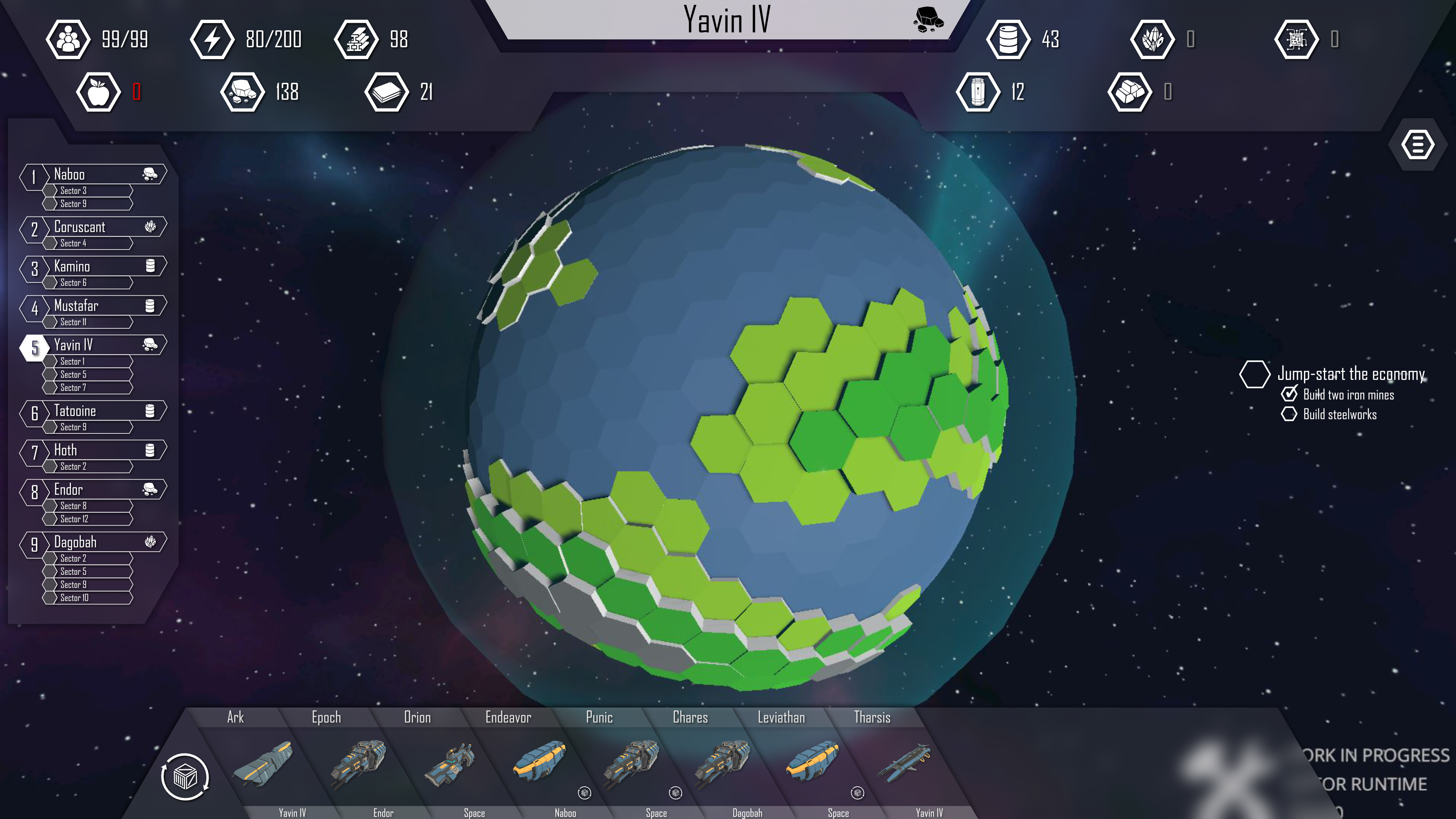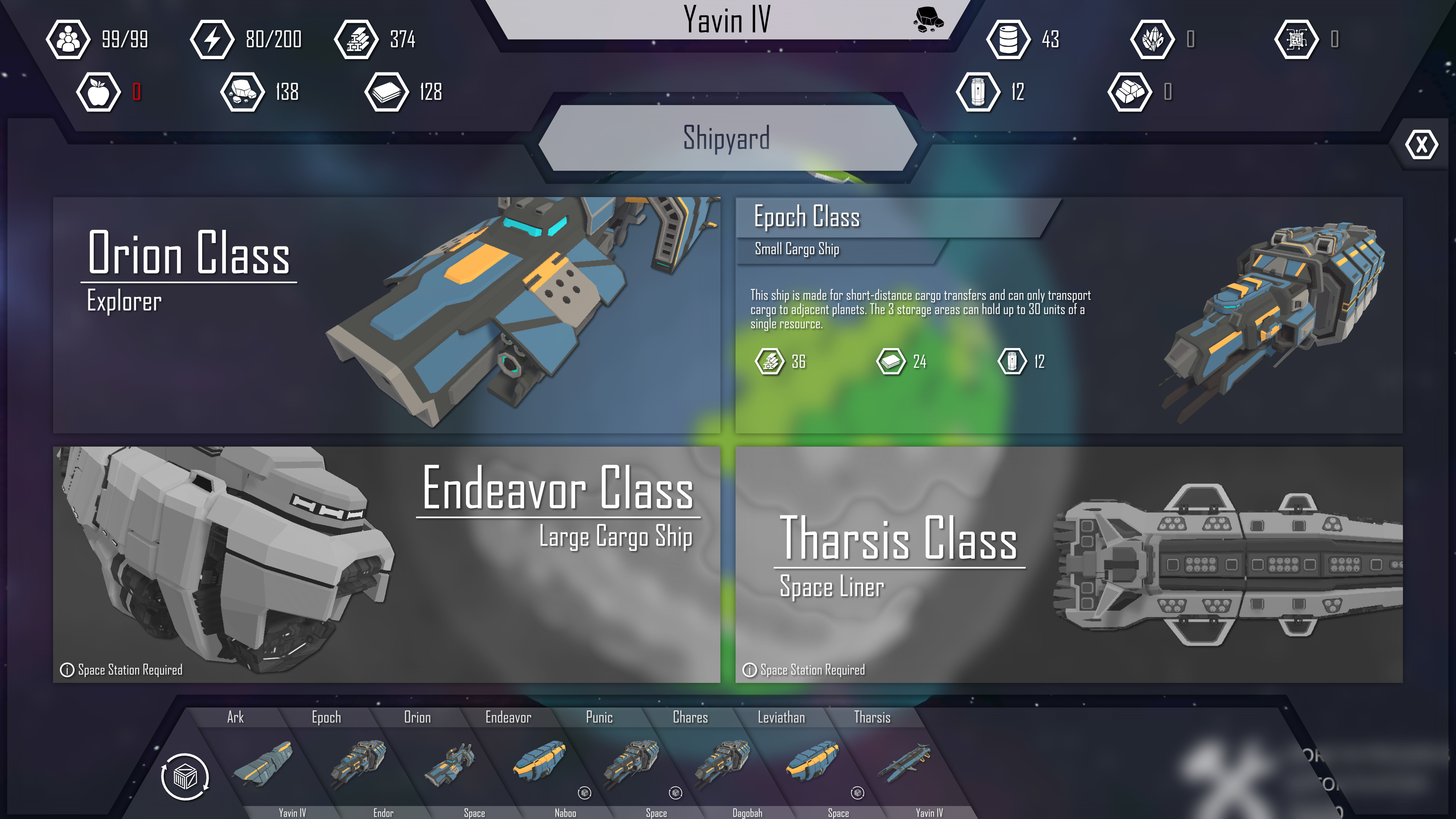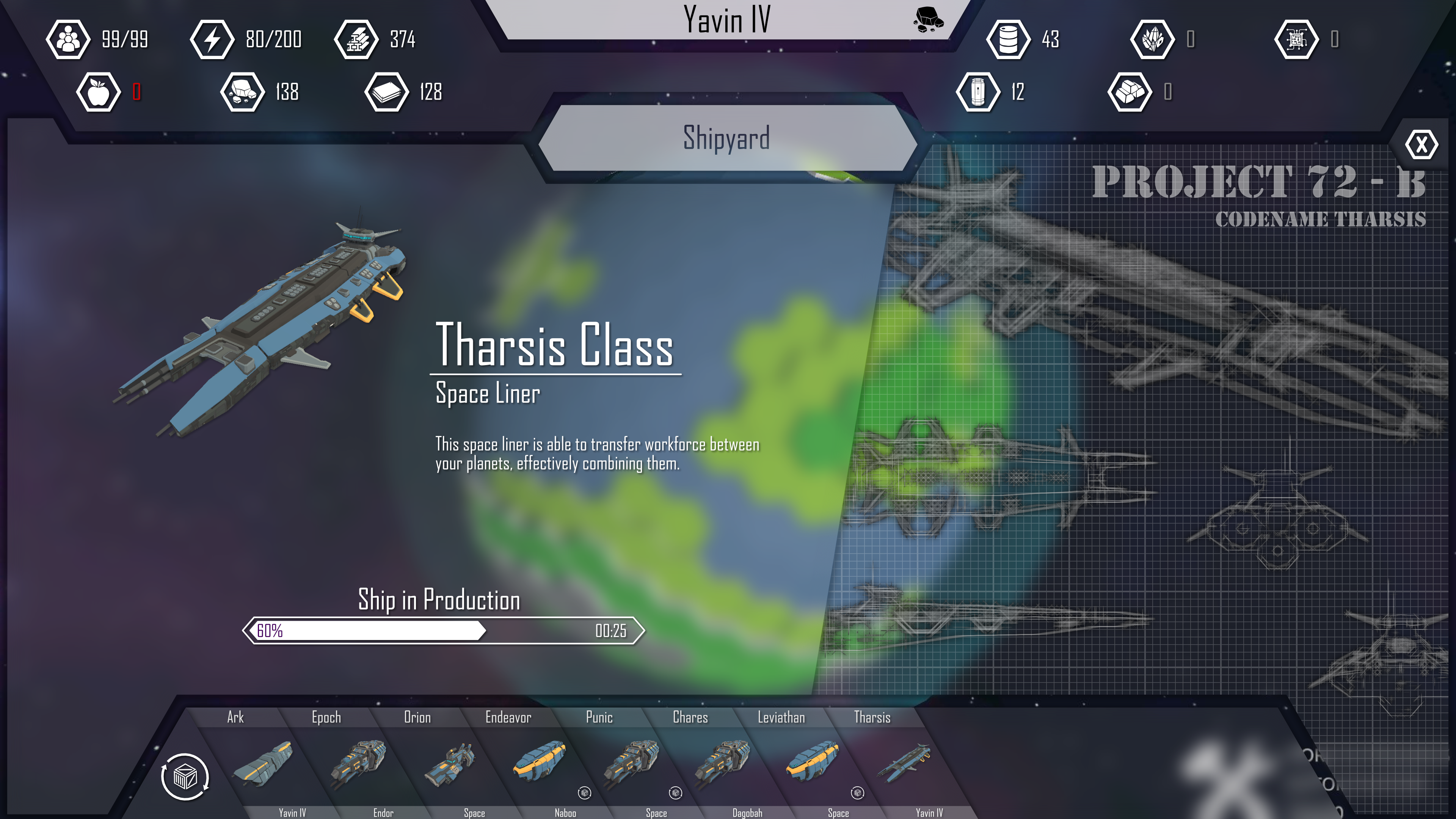 The UI for this game required two custom tools and a custom shader. The shader allows for a gaussian blur of the background and soft shadows for the UI elements. Both in combination give a clean, modern UI. The first of the two tools renders sprites for objects from a large number of directions. It does not include the background and outputs the sprites in 2 different resolutions. The second tool is used for UI optimisations. Unfortunately, Unity's canvas UI system is not really performant when it comes to lists. Since we need a lot of them this tool optimizes UI meshes and reduces draw calls and time needed during UI mesh regeneration. We added a shader that creates a pencil sketch of an object and used it to create the blueprint effect of the shipyard.